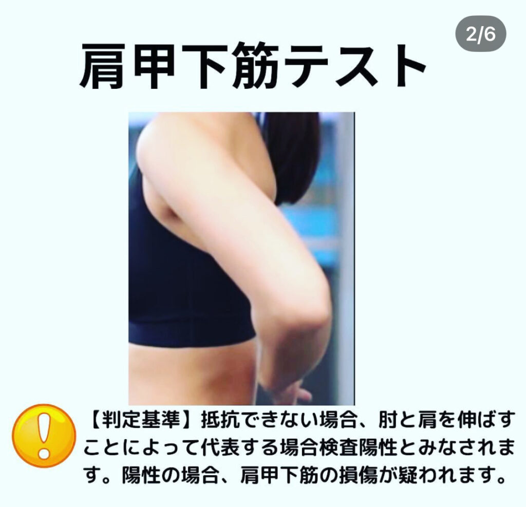 肩甲下筋の損傷・断裂・筋力低下の有無を確認します。